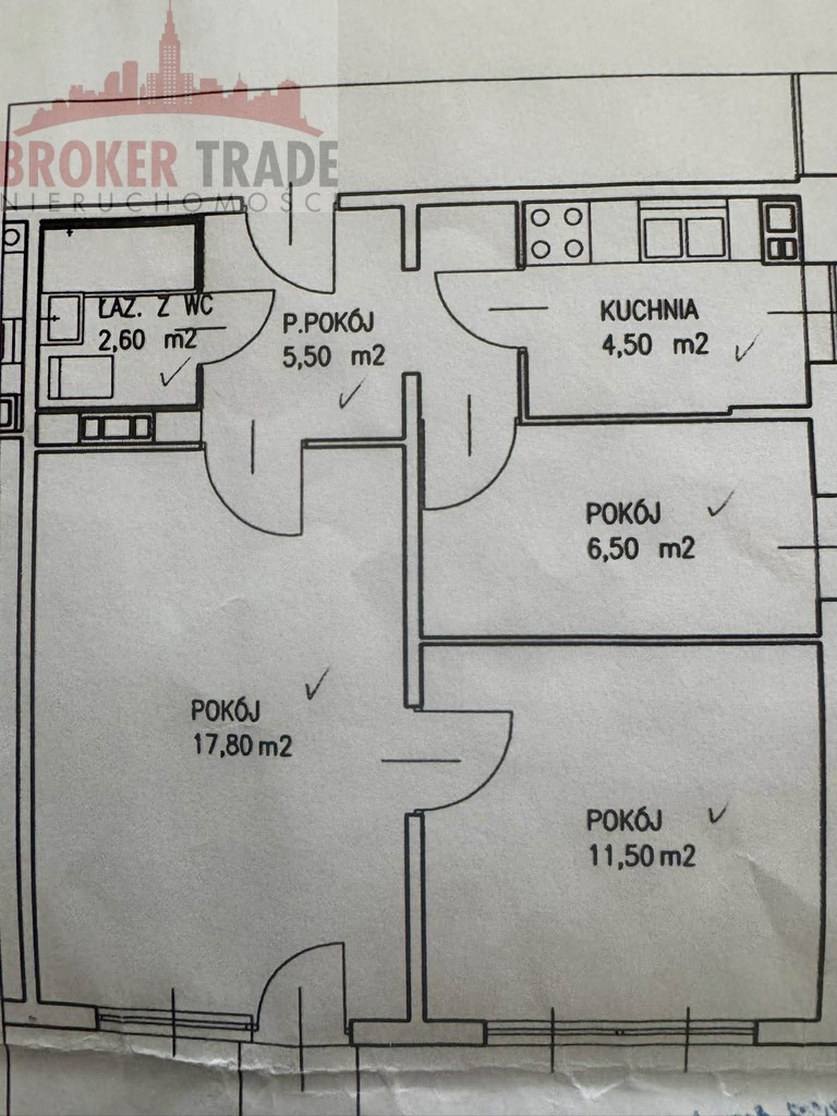 Składa się z pokoju dziennego, kuchni, dwóch pokoi, łazienki, przedpokoju oraz balkonu.
